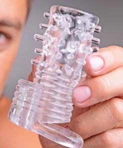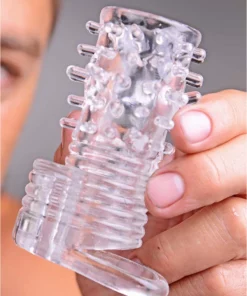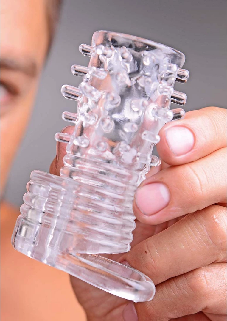XR Brands Wibrująca nakładka intymna teksturowana przezroczysta TPR