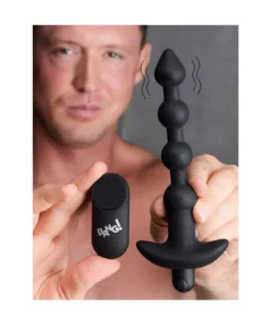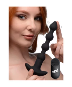 XR Brands BANG! silikonowe kulki zdalnie sterowane, 28 trybow, czarne to innowacyjny produkt stworzony z myślą o komforcie i nowoczesnych rozwiązaniach technologicznych. Model ten wyrożnia się zaawansowanym systemem wibracji oraz ergonomiczną, anatomiczną konstrukcją. Bezprzewodowy pilot umożliwia wygodne sterowanie intensywnością pracy urządzenia, co pozwala na łatwe dopasowanie funkcji do indywidualnych preferencji. Produkt wykonano z wysokiej jakości, jedwabiście gładkiego silikonu medycznego, ktory jest bezpieczny dla ciała, nieporowaty i nie zawiera ftalanow.