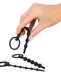 Każdy z trzech elementow zestawu posiada zaokrągloną końcowkę oraz anatomiczny pierścień mocujący, ktory ułatwia obsługę, zapewnia wygodne użytkowanie i pozwala na pełną kontrolę. Rożne średnice kulkowych zakończeń pozwalają na indywidualne dopasowanie oraz stopniową regulację.