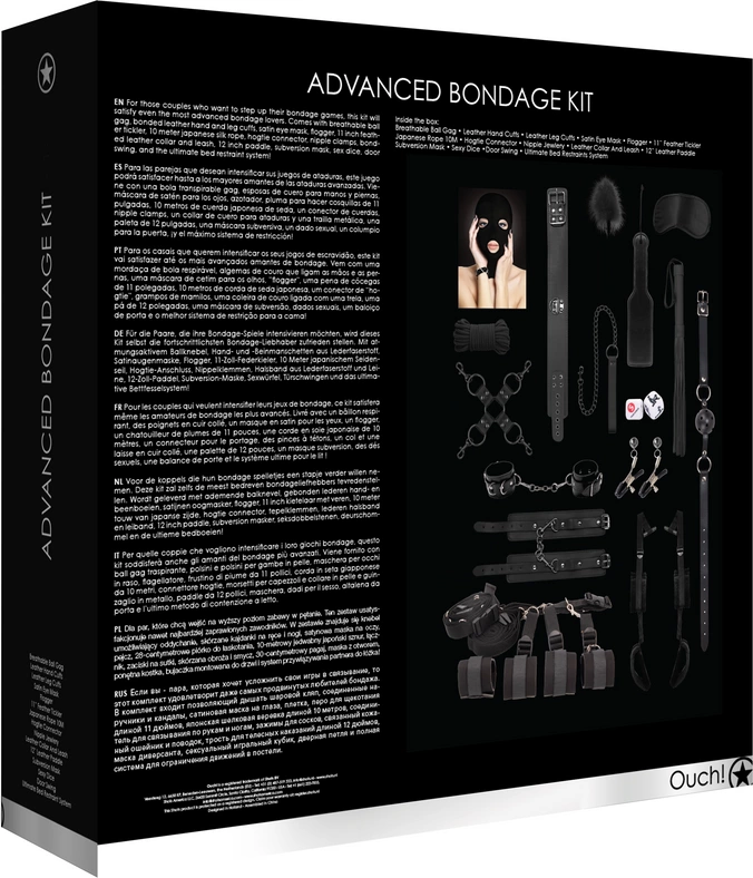 Ouch! by Shots Zaawansowany zestaw akcesoriow do gry wiążącej – czarny to kompletny i precyzyjnie zaprojektowany zestaw, ktory pozwoli na pełną personalizację oraz rożnorodność w trakcie zabaw związanych z technikami wiązania i kontrolą ruchu.
