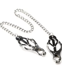 XR Brands Tyrant Clover to specjalistyczny zestaw metalowych zaciskow w kształcie koniczyny, zaprojektowany do precyzyjnego uścisku. Model ten wyrożnia się obecnością zaokrąglonych, metalowych wypustek oraz wytrzymałym łańcuszkiem, ktory umożliwia łatwe łączenie i manipulowanie zaciskami. Konstrukcja w całości wykonana jest ze stali nierdzewnej, pozbawionej niklu, co czyni ją odpowiednią nawet dla osob o wrażliwej skorze.