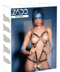 ZADO Body skorzane z łańcuszkami – unikalny model dla miłośnikow stylu i wyrazistego designu! Prezentujemy jednoczęściowe body wykonane z wysokiej jakości skory dwoinowej o precyzyjnie zaprojektowanej konstrukcji paskowej. Skorzane paski zostały połączone solidnymi stalowymi pierścieniami, a całość uzupełniają metalowe elementy oraz dekoracyjne łańcuszki, ktore tworzą oryginalny, nowoczesny wygląd. Model ten wyposażono w pełni regulowane paski, aby zapewnić indywidualne i komfortowe dopasowanie w zakresie rozmiaru S-L. To doskonałe rozwiązanie dla osob ceniących niebanalne akcesoria i wysoką jakość wykonania.