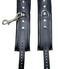 Specjalny system regulacji zapięcia na klamrę umożliwia szybkie i indywidualne dostosowanie obwodu kajdanek, dzięki czemu są one odpowiednie zarowno dla początkujących, jak i bardziej doświadczonych użytkownikow. Podwojny karabińczyk wykonany z wytrzymałego metalu zapewnia niezawodne połączenie oraz łatwość montażu i demontażu. Zastosowanie wysokogatunkowej skory oraz staranne wykończenie gwarantują trwałość oraz bezpieczeństwo użytkowania.