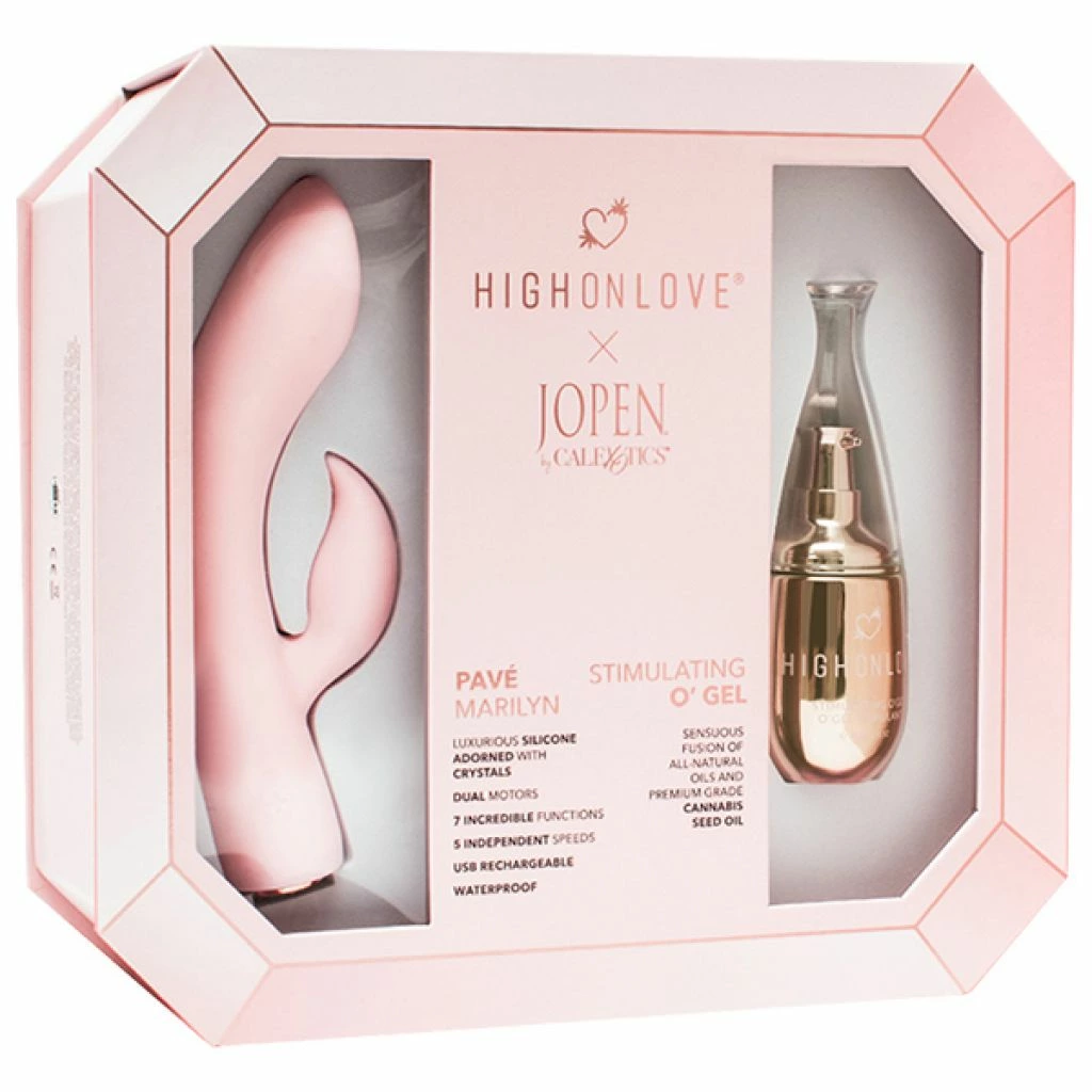 HighOnLove Objects of Pleasure Zestaw Prezentowy to ekskluzywna propozycja łącząca innowacyjność z elegancją. Ten starannie skomponowany komplet zawiera profesjonalny żel na bazie naturalnych składnikow oraz wysokiej klasy silikonową maszynę intymną Jopen by CalExotics Marilyn, aby zapewnić kompleksowe wsparcie podczas relaksu.