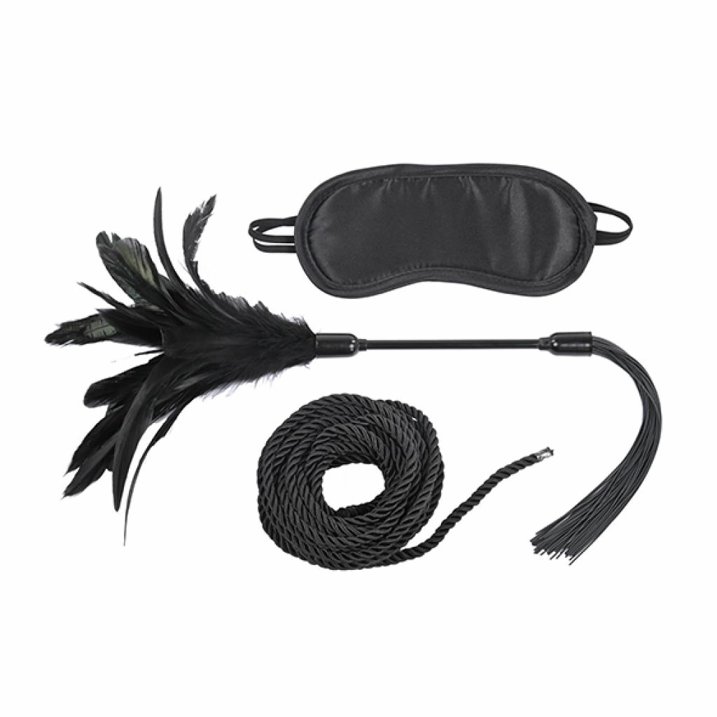 Sportsheets Shadow Tie and Tickle Kit to kompletny zestaw do eksperymentowania z elementami krępowania oraz stymulacji sensorycznej. Został zaprojektowany z myślą o osobach poszukujących nowych doznań w zakresie wzajemnego zaufania oraz budowania bliskości.