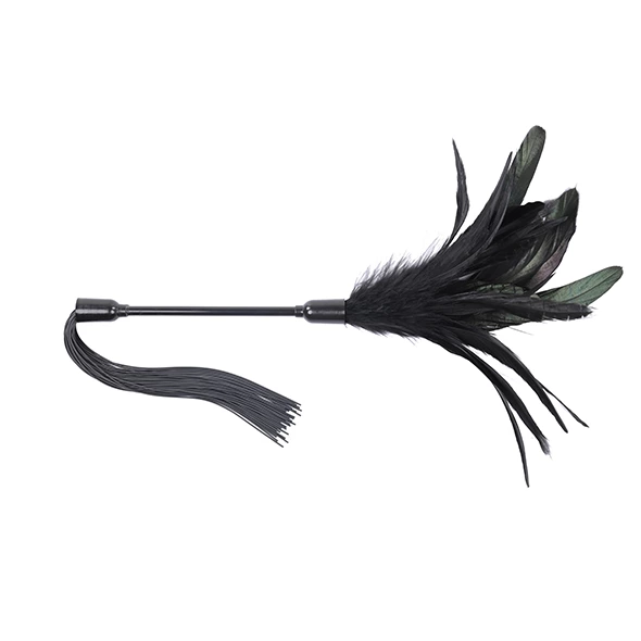- Akcesorium 2w1 – gumowy mini bat ze zintegrowanym piorkiem, pozwalający na delikatną stymulację powierzchni ciała lub przyjemne łaskotanie.