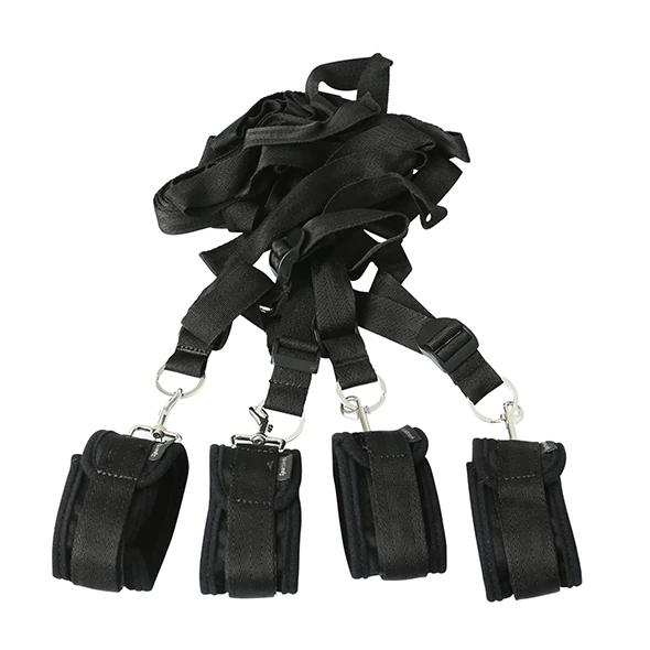 Sportsheets Under the Bed Restraint System to zaawansowany zestaw pasow, ktory pozwala w prosty sposob przekształcić każde łożko w funkcjonalną strefę do krępowania. System ten dedykowany jest osobom poszukującym wysokiej jakości rozwiązań do bezpiecznego i wygodnego ograniczania ruchow partnera w domowym zaciszu.