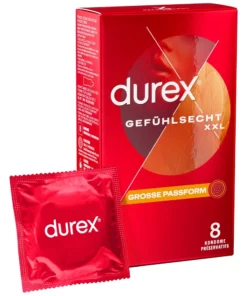 Durex Gefuhlsecht XXL 8szt – Duże prezerwatywy silikonowe, 60 mm