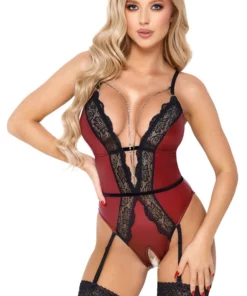 Abierta Fina Body Koronkowe Czarny M z Odpinanymi Łańcuszkami