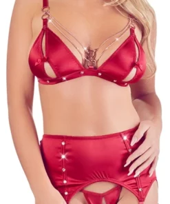 Abierta Fina Komplet Satynowy Koronka Czerwony 2-częściowy 80C/M
