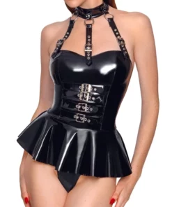 Black Level Body sznurowane z maską z uszami, czarne, rozmiar S
