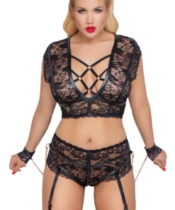 Cottelli Collection Bondage Komplet Koronkowy 4XL z Kajdankami