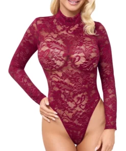 Cottelli Lingerie Body Koronkowe Długi Rękaw Bordowa Czerwień S